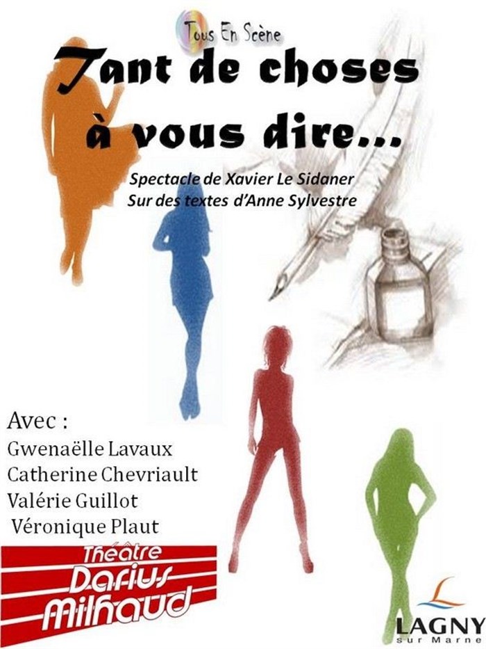 Basé sur les chansons d'Anne Sylvestre, ce spectacle nous entraine dans l'univers de 4 femmes qui nous parlent d'elles mais aussi de nous et de vous. Elles sont tendres, drôle et parfois cruelles. Attention ! Elles peuvent vous faire rire aux larmes et sitôt après, du prochain numéro, vous les faire couler du coeur. Elles sont toutes les quatre très différentes mais pas tant que ça !!! Et surtout, elles ont tant de choses à vous dire...