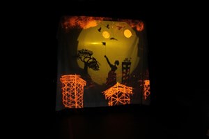 Par le théâtre d'ombres, on s'envole avec les oiseaux à la découverte des panoramas du Caire et de l'architecture des banlieues parisiennes.