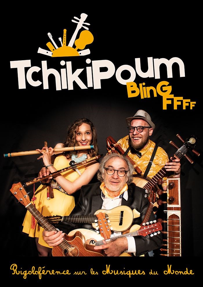 Le Professeur Octave Piston entame une conférence sur les musiques du monde. Ses deux assistants Mr BeatBox et Miss Mélodie ne se passionnent pas pour la monotonie de son discours. Ils décident de reprendre en main l'exposé et d'en faire une "Rigoloférence" ! Oui qui n'a pas rêvé d'apprendre en s'amusant ! Les instruments du monde ont des histoires merveilleuses à nous donner à entendre. De la Louisiane en passant par la grande Russie, nos trois personnages font découvrir aux petits comme aux grands des sonorités venues d'ailleurs et des anecdotes drôles ou effrayantes sur ces objets. Attention comme dit le titre ça va faire : Tchikipoum Bling Ffff !