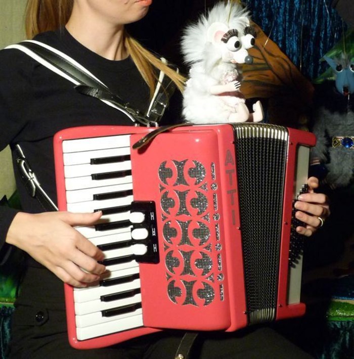 Spectacle de marionnettes à fils, inspiré d'un conte russe traditionnel, avec de la musique jouée en direct à l'accordéon.