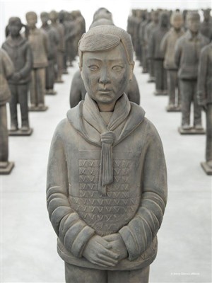 À l'image de la fameuse armée des soldats de Xi'an enterrée avec l'empereur Qin il y a plus de 2000 ans, Prune Nourry a réalisé une armée de 116 statues de jeunes filles chinoises.