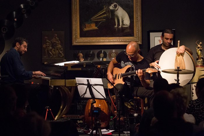Rejoint par le percussionniste Yousef Zayed, ce désormais trio d'Orientaux de Paris, de virtuoses passionnés d'improvisation invente un dialogue entre cordes pincées et frappées au rythme des percussions.
