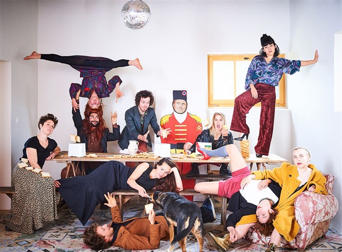 À 9 sur le plateau, ce groupe de circassiens (5 femmes et 4 hommes) d'origine plurielle (Brésil, Angleterre, Finlande, Australie, Italie, Espagne, Nouvelle-Calédonie, France...) et de pratiques artistiques diverses mais complémentaires.