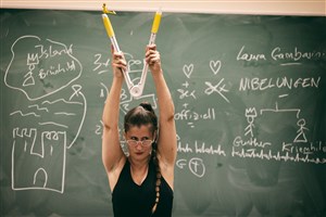 Par le pouvoir des mots, du jeu et grâce aux objets qui l'entourent, l'artiste suisse qui a elle-même été professeure d'allemand apporte une dose d'humour sans égale à cette aventure épique.