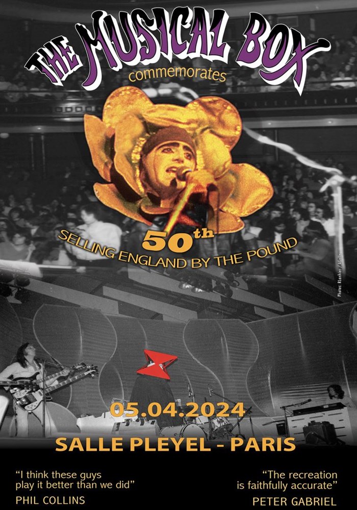 The Musical Box, qui a accueilli sur scène Phil Collins et Steve Hackett et a été acclamé par plus d'un million de spectateurs dans les salles les plus prestigieuses du monde tel que Royal Albert Hall de Londres, présentera Selling England by the Pound, le concert emblématique de 1973 dans ses moindres détails.