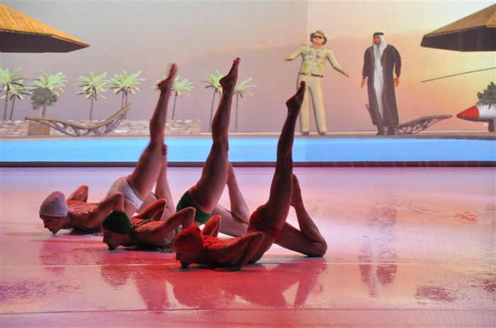 Les mythologies populaires, les préjugés européens, l'articulation politique entre réalité et fiction, la naissance de la perspective en peinture dans l'Italie du XVe siècle qui donne à voir un cadre plus qu' un point de fuite, les avatars d'aujourd'hui... Pour Superamas et ses huit performers qui naviguent entre réel et virtuel et habitent la scène entre théâtre, danse, opéra, images en trois dimensions, lumière et son, l'époque est un sujet exigeant. Le ton est en revanche résolument celui de la comédie et la scène devient ainsi un vaste théâtre d'opérations où tout peut arriver.