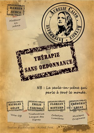 un super spectacle, percutant, drôle, grinçant, intelligent joué avec brio par la formidable comédienne Aurélie Calvo, également autrice du texte. Pas besoin d'ordonnance pour cette thérapie de groupe qui nous fait réfléchir et surtout qui nous touche. Réservez vite pour aller voir cette pépite!