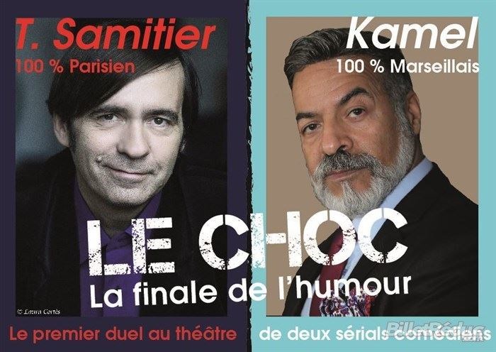 Thierry Samitier: incarne Le personnage "d'Aymeric Dubernet Carton" dans la série "Nos Chers Voisins" et Kamel, un geant du rire, vont nous présenter : Le premier duel au théâtre de deux sérials comédiens 100% parisiens contre 100% marseillais.