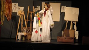 En piochant dans les objets qui peuplent son atelier, en campant divers personnages, Camélia se lance alors dans le récit de ce conte populaire chinois : un petit garçon a le désir fou de devenir peintre, il va surmonter sa condition et perfectionner son art, et un jour un petit génie lui offre un pinceau ... magique, qui suscite la convoitise d'un roi tyrannique.