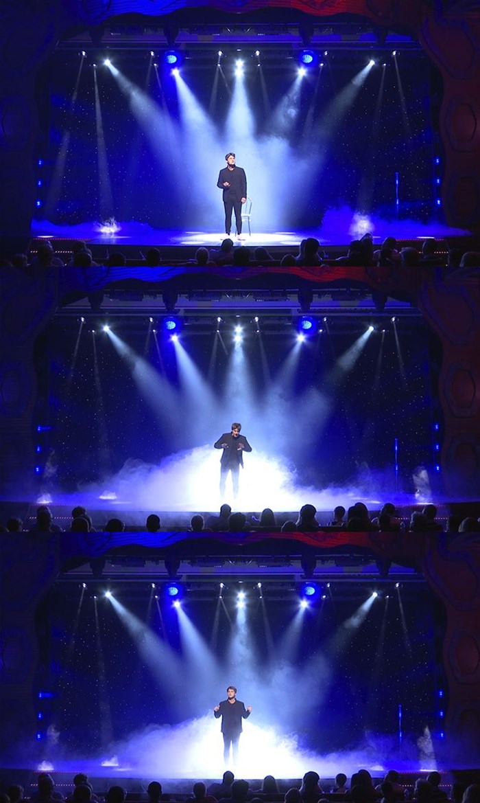 Récompensé par 19 prix en Festivals d'Humour et immanquablement salué par le public, son humour innove et son humeur percute, en même temps qu'il s'adresse à chacun et concerne tout le monde.