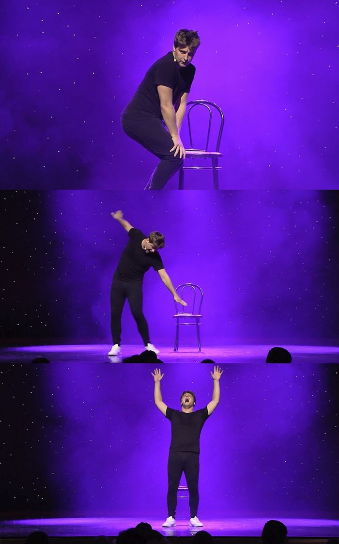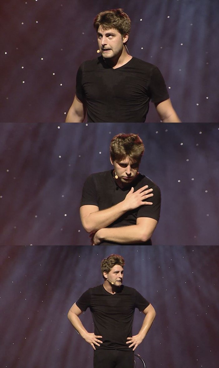 À l'image de cette société zapping dans laquelle tout va très vite, s'éclate, et finalement se rejoint, Timothé Poissonnet nous surprend tout au long de son spectacle grâce à son style, unique en son genre : l'humour séquentiel.