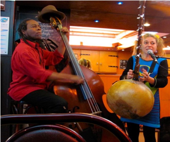 Duo original, chant, harpe africaine et basse, un univers métissé et chaleureux, une énergie communicative et des improvisations séduisantes.