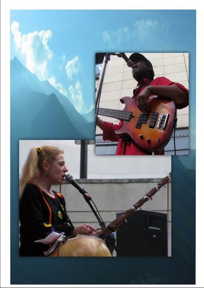 Un duo original : deux voix, un luth africain (le n'goni) et une basse électrique. Un répertoire varié dans des langues différentes.