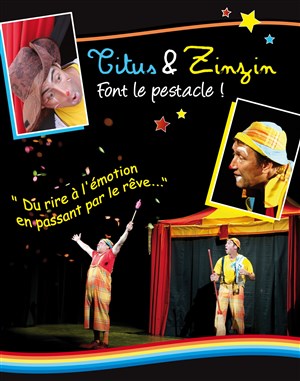 Voir plusquel spectacle! un grand -zinzin- un petit -titus-deux clowns hyper professionnels. Un 'pestacle' drôle, trés bien construit, des gags délirants, une séquence émotion sur une idée superbe... une énergie hors du commun, une générosité permanente et une exceptionnelle complicité avec les enfants qui ne s'y trompent pas et leur réservent un accueil de 'star'! Qu'il est bon de voir un vrai spectacle avec des vrais clowns! Et un décor-chapiteau trés pro! Leurs sketches sont trés construits et s'intègrent dans un spectacle mené a 1OO à l'heure! Bravissimo messieurs! Continuez! Nos enfants -et nous les grands!- avons passé un moment inoubliable!