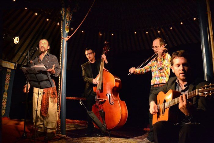 Autour de l'oeuvre de Brassens qu'ils tournent à leur manière, nos quatre cordistes, nous entraînent dans leurs fantaisies littéraires et musicales.