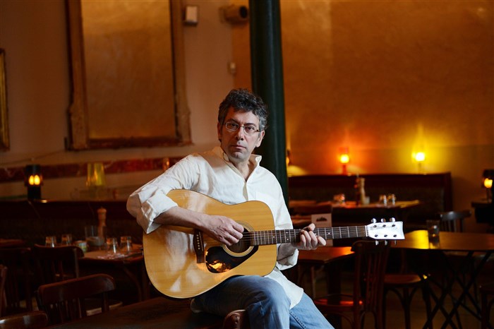 Tout à coup un consommateur vous adresse la parole, il est en veine de confidences. Vous sentez qu'il est mûr pour raconter sa vie. Quand il se met à chanter, son léger accent – sans doute méditerranéen – s'estompe. Il vous parle et il chante: l'intime, la cité, la poésie... Ces chansons projettent des sortes de courts métrages entrelacés dans ses commentaires, souvent d'un humour acide. Sa guitare joue dans les tonalités folk, parfois jazzy, parfois plus rock. C'est vraiment un bon compagnon de bar.
