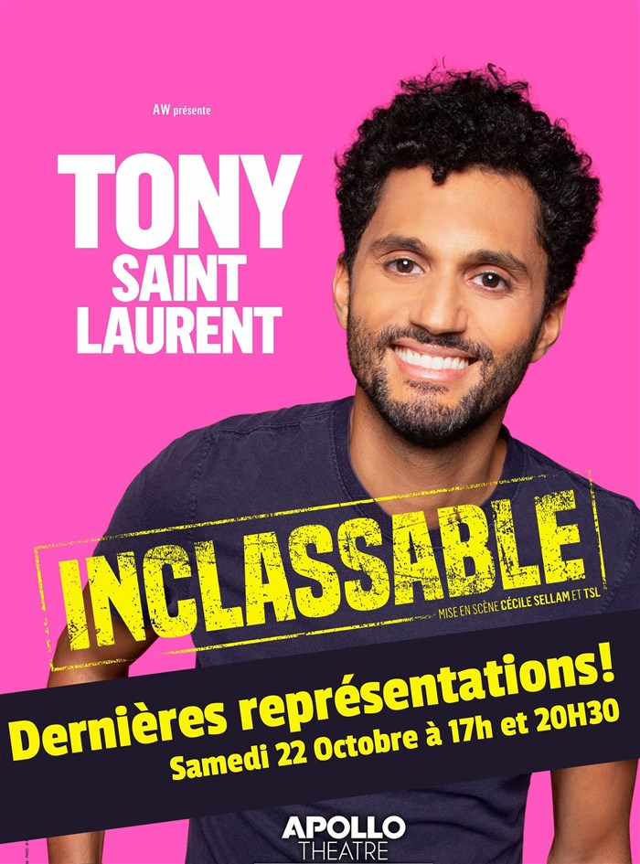Tu veux savoir ce qu’ont pensé les spectateurs et la presse de cet événement : Tony Saint Laurent dans Inclassable - Apollo Théâtre ? Découvre leurs avis éclairés et prépare-toi à vivre un moment d’exception à ton tour en réservant tes places !