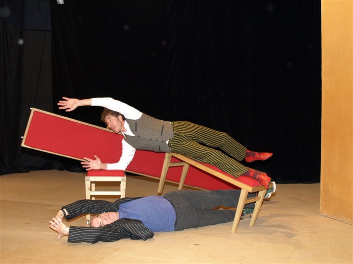 Depuis sa résidence au tpe, et le beau chemin accompli, c'est avec bonheur que nous le retrouvons à pédaler en tandem avec son complice Jean-Paul Bourel, interprète charismatique au sein de la compagnie. Point d'interrogation, virgule, point d'exclamation ou de suspension, grand amoureux de la musicalité des mots qu'il fait jongler avec la danse, l'univers de Georges Appaix est reconnaissable entre mille. Depuis les années quatre vingt, il ne cesse de brouiller les pistes en réinventant de nouveaux langages.