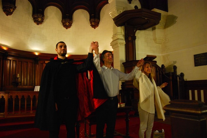 Tosca ! Oppressant jeu de pièges dont on disait que même Dieu n'oserait un scénario aussi cruel. Cet opéra dont le drame se joue entre quelques personnes se prête merveilleusement à une réduction de la forme, le fond restant intouché et inviolable: le piano remplacera l'orchestre, et les quatre personnages principaux portent seuls le sens de l'histoire.