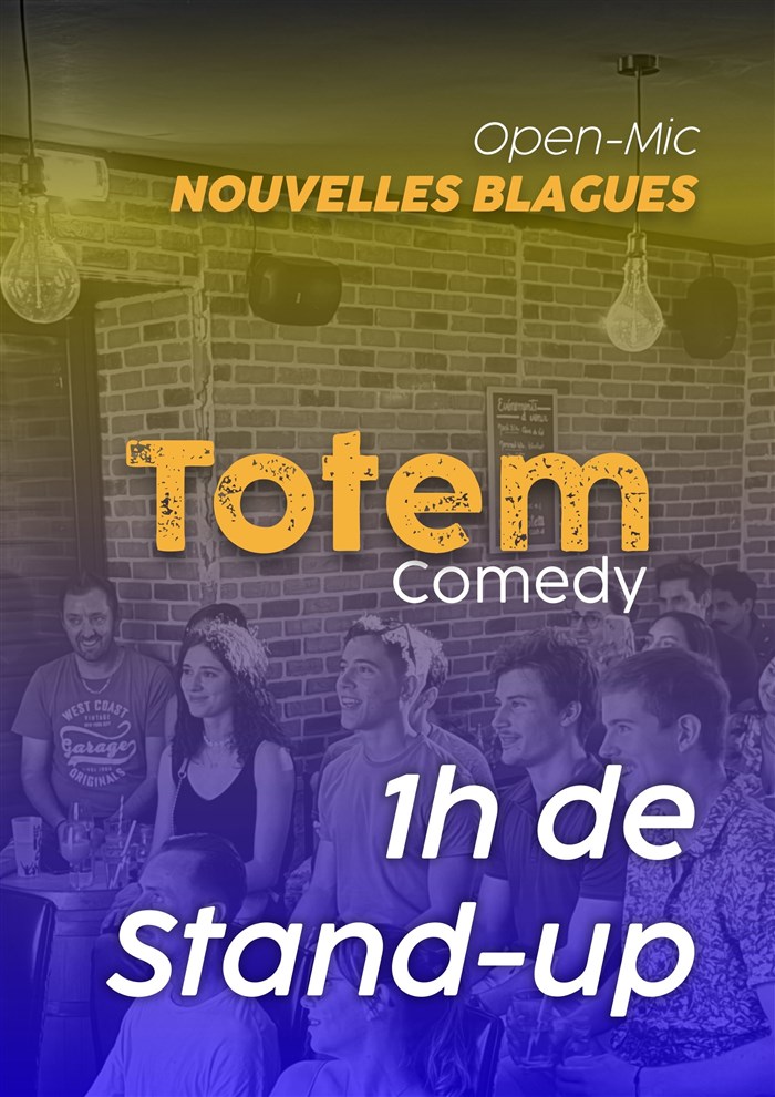 Tous les dimanches à 18h00, vous pourrez assister à la naissance de nouvelles blagues. Des humoristes de tous niveaux tenteront de vous faire passer une soirée pleine de rires pendant 1h. Les stand-upper qui oseront prendre le Totem seront ceux qui promettront de tester sur vous des blagues pour la toute première fois ! Ambiance digne des comedy clubs intimistes !