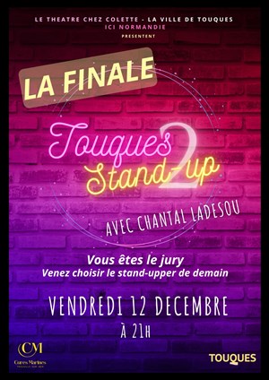 Après le succès des phases qualificatives, le Théâtre Chez Colette vous propose d'assister à la finale du concours "Touques Stand-Up 2", sous le parrainage et en présence de Chantal Ladesou.