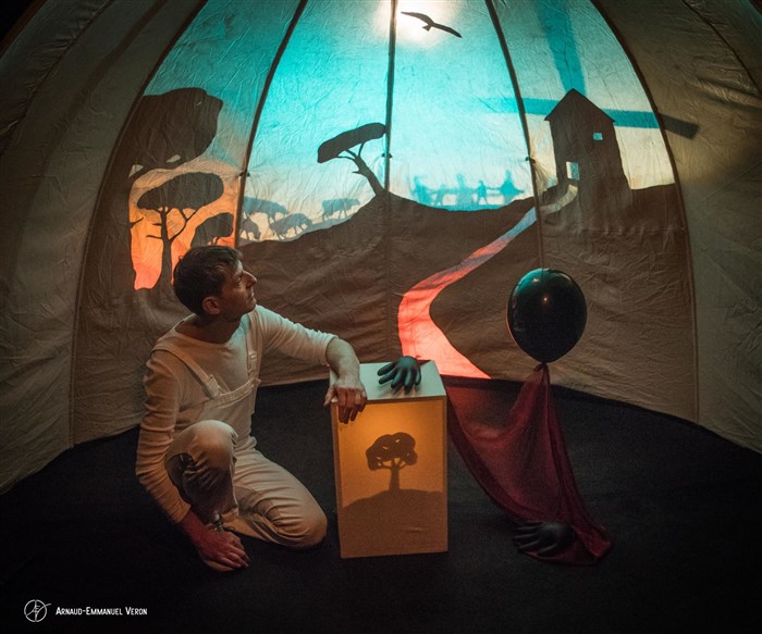 De simple gants deviennent des poules, l'igloo se métamorphose en théâtre d'ombres et un ballon noir se transforme en partenaire idéal pour une évasion colorée et poétique.