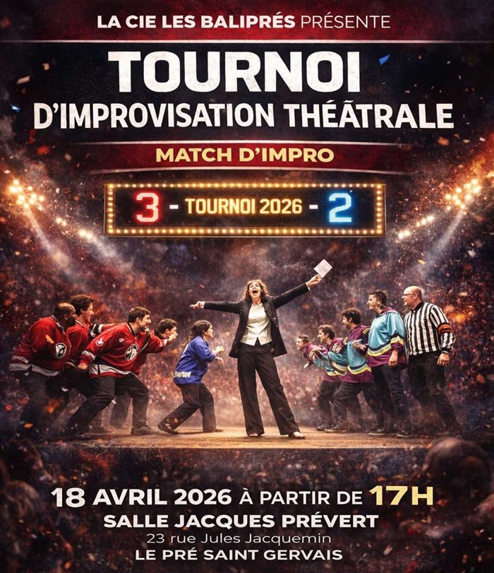 Découvre Tournoi d'improvisation théâtrale, qui fait partie de notre sélection d’événements de type Théâtre et qui se tient ici : Salle Jacques Prévert -