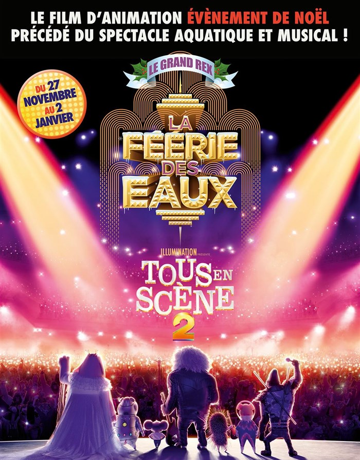 Retrouvez la suite des aventures de Buster Moon avec " Tous en scènes 2 " au Grand Rex avec notre mythique spectacle de la Féérie des Eaux !
