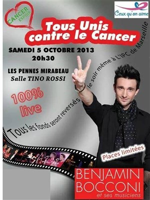 Après avoir enflammé les plateaux télés, Benjamin Bocconi, parrain de l'association Cancer espoir assurera avec ses musiciens la deuxième partie de ce show "Tous unis contre le cancer".