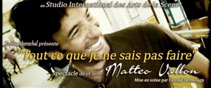 On a envie de mettre une bonne note à Mattéo Vallon, parce que c'est un bon élève. Il est appliqué, il a beaucoup travaillé son texte, il l'a bien appris, il y ajoute quelques gestes eux aussi bien travaillés. Et le propos est intéressant, vraiment, Mattéo épingle avec finesse notre quotidien, le tout avec quelques jeux de mots très bien travaillés. Mais hélas, on n'arrive pas à mettre une bonne note. Parce qu'il n'y a que l'écrit qui se démarque (ok, ce n'est pas si courant mais difficile de se contenter de cela quand on vient voir un spectacle). Malheureusement, M. Vallon n'est pas un show man, il n'a pas cela gravé dans les gènes. Du coup, on repart mi-figue, mi-raisin, un peu déçus par le manque de pêche et de fluidité de cette toute petite heure.