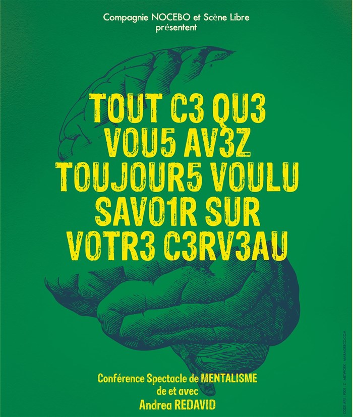 Finaliste au Concours Nostradamus D'Or 2016 du Meilleur Mentaliste Européen, Andrea Redavid, comédien formé au Conservatoire National et au Centre National des arts du Cirque, avec sa convivialité, un humour singulier et beaucoup d'habileté, vous fera voyager autour des petits secrets et des capacités insoupçonnées de cet outil si extraordinaire, et pourtant tellement méconnu qu'est votre cerveau...