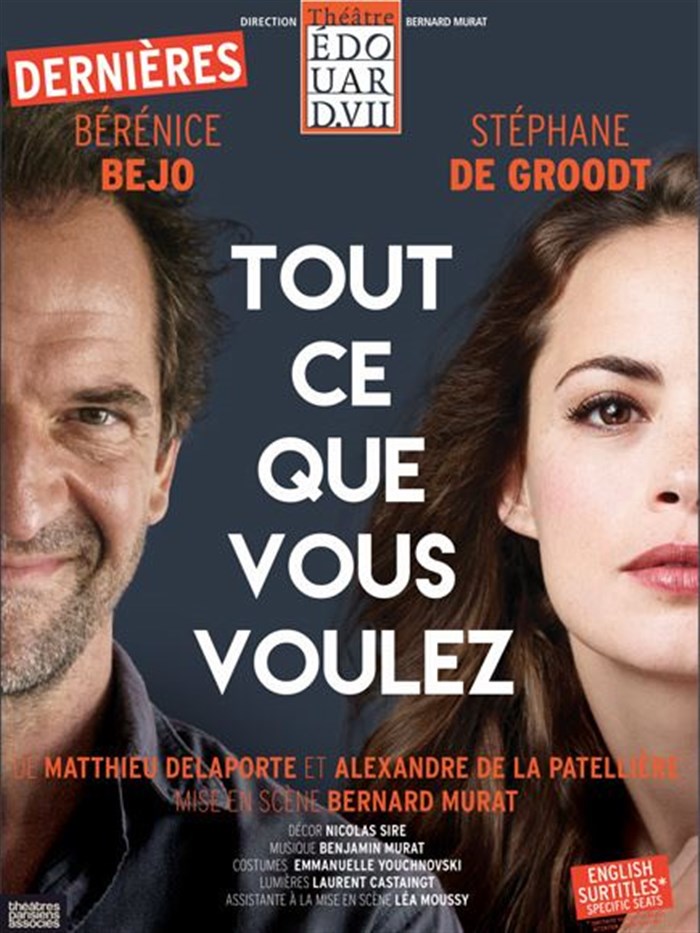 L’événement Tout ce que vous voulez | avec Bérénice Béjo et Stéphane de Groodt de type Comédie, organisé ici :