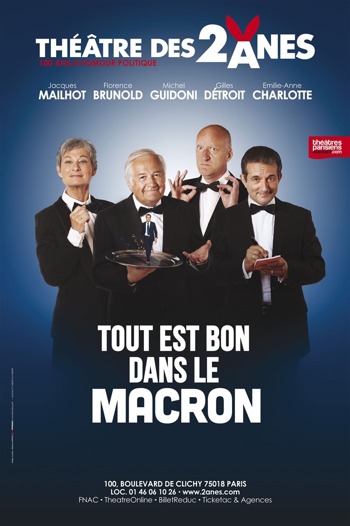 Tu veux savoir ce qu’ont pensé les spectateurs et la presse de cet événement : Tout est bon dans le Macron - Théâtre des 2 Anes ? Découvre leurs avis éclairés et prépare-toi à vivre un moment d’exception à ton tour en réservant tes places !