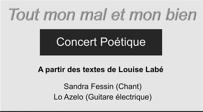Sandra Fessin, comédienne et chanteuse, et Lo Azelo, à la guitare électrique, vous invitent à redécouvrir ses sonnets ainsi que des extraits de ses Elégies et de son texte en prose "Débat de Folie et d'Amour", beaucoup moins connus.