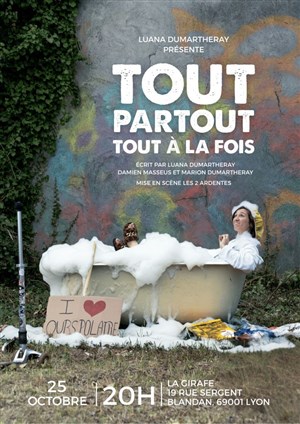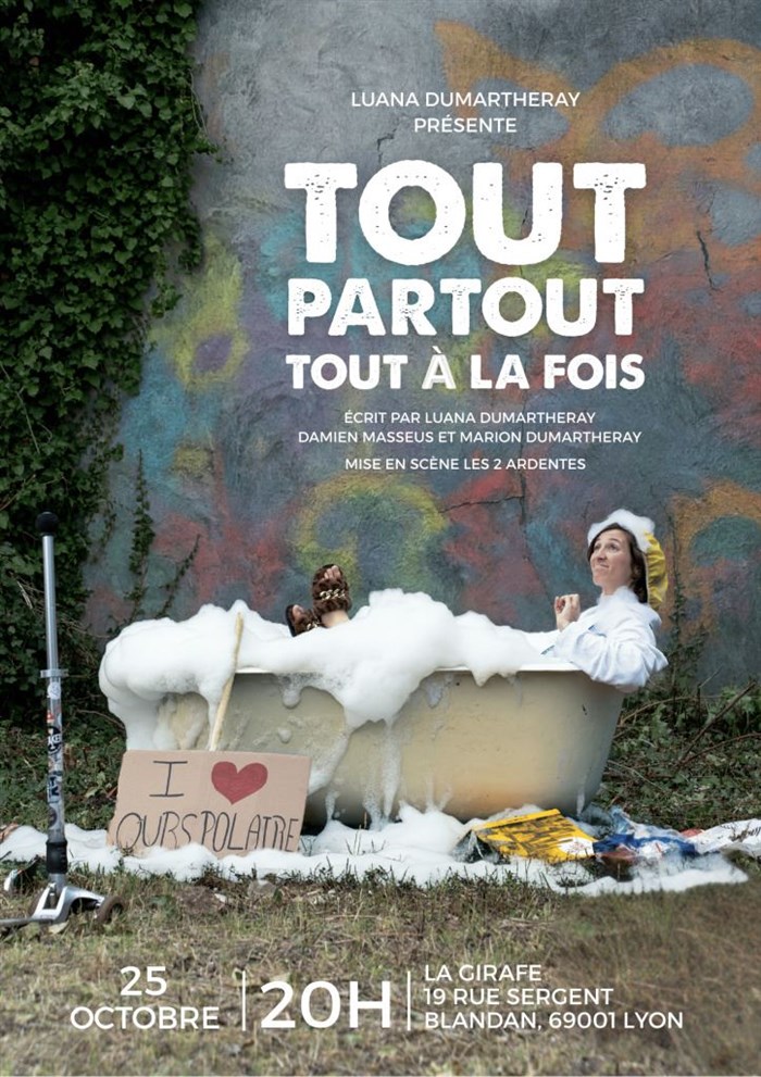 Dans Tout partout, tout à la fois, Luana explore ses paradoxes et son amour pour les gens. Elle rit d'elle-même, de nos contradictions et de ce monde qu'elle tente d'aimer et de sauver... "tout en restant profondément humaine et irrésistiblement attachante" (c'est pas moi qui l'ai écrit ça, c'est Chat GPT, mais je le crois...).