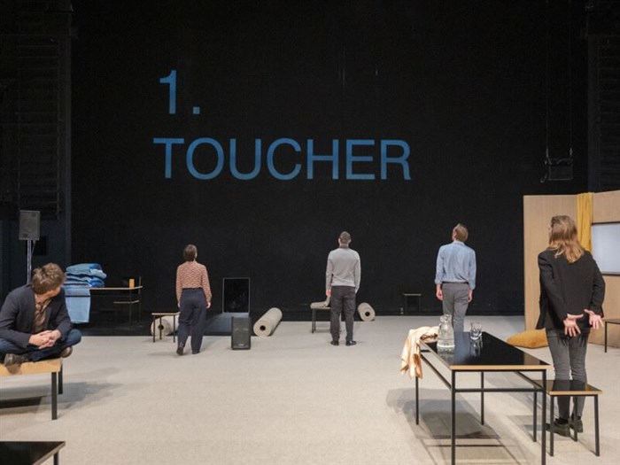 La pièce est construite à partir de cinq gestes, arrivant sans prévenir dans une situation familiale.