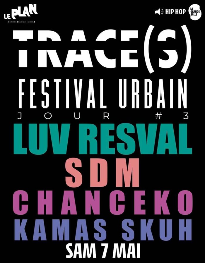 L’événement Trace(s) : Luv Resval + SDM + Chanceko + Kamas Skuh - Jour 3 de type Rap / R'n'b / Slam /Hip hop, organisé ici :