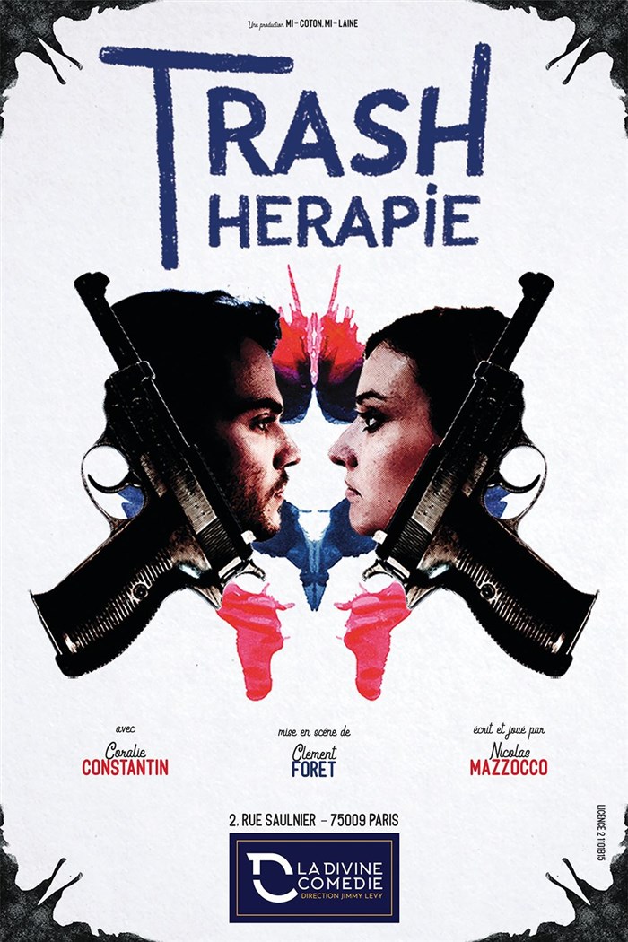 "Trash Thérapie" est une comédie d'humour noir, qui traite sur le fond un sujet grave. Vous pensez qu'une séance de psy peut être barbant ? Vous ne connaissez pas encore Claire ! Et quel professeur n'a jamais rêvé de tuer un élève ? Rémi en sait quelque chose !