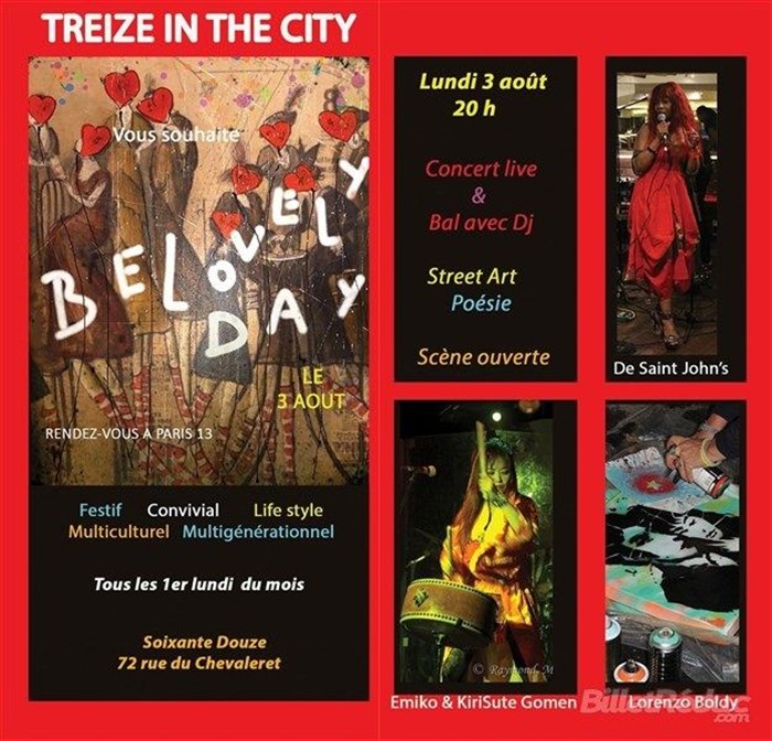 Soirée Treize In The City présentée par Alexia de Saint John's qui vous propose, un moment de convivialité heureuse en compagnie d'artistes de talent pour célébrer Belovely Day, cette journée placée sous le signe de l'amour et des services rendus les uns aux autres.