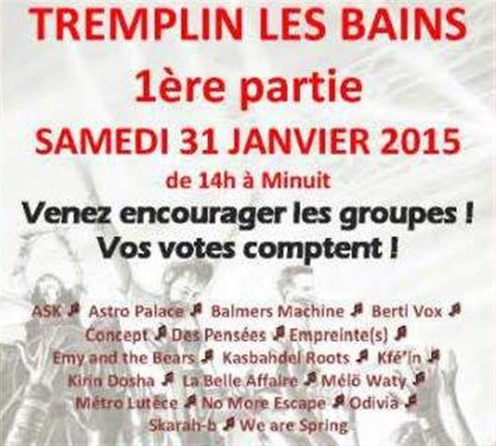 L’événement Tremplin les bains 2015 de type Plateau d'artistes, organisé ici :