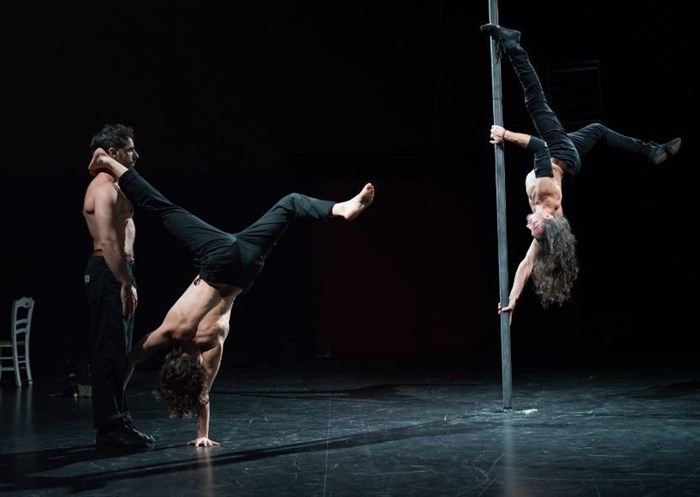Ils se comprennent dans ce langage corporel qu'ils construisent en ne partant pas des convergences, mais des différences qui les connectent. Les relations humaines les emmènent vers des états qui se transforment jusqu'à ce que surgisse un univers composite, entrelacé, un agrégat de corps qui cherche son chemin. Avec un mât, le sol et une scénographie minimaliste, Três amène les corps à parler ensemble.