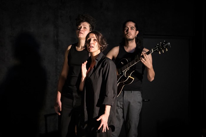 Cécile Garcia Fogel avait réalisé avec sept comédiens une adaptation musicale* de la tragédie de Racine. Elle recréé ce spectacle avec une chanteuse comédienne, comme elle, et une guitariste chanteuse, pour une nouvelle exploration musicale au plus profond de l'oeuvre. Cécile Garcia Fogel a repris ses chansons composées des fragments de la tragédie, qu'elle a nourri des mots du poète grec Yannis Ritsos, enrichissant d'un imaginaire contemporain cette histoire passionnelle. Sur des airs d'inspiration espagnole, jazz ou grecque, le trio joue la gamme des émotions d'un texte, perfection de la langue française.