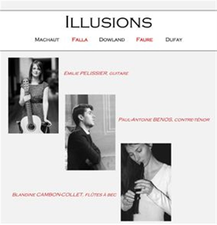 "Illusions", un concert en trio avec Paul Antoine Benos (contre-ténor), Blandine Cambon-Collet (flûtes à bec) et Emilie Pélissier (guitare).