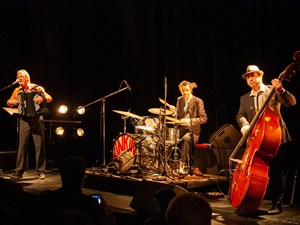 Chansons revisitées des années 30 à 80 avec accordéon, contrebasse, batterie.