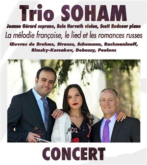 Le trio Soham aura le plaisir de vous proposer de oeuvres de Brahms, Strauss, Schumann, Rachmaninoff, Rimsky-Korsakov, Debussy, Poulenc.
