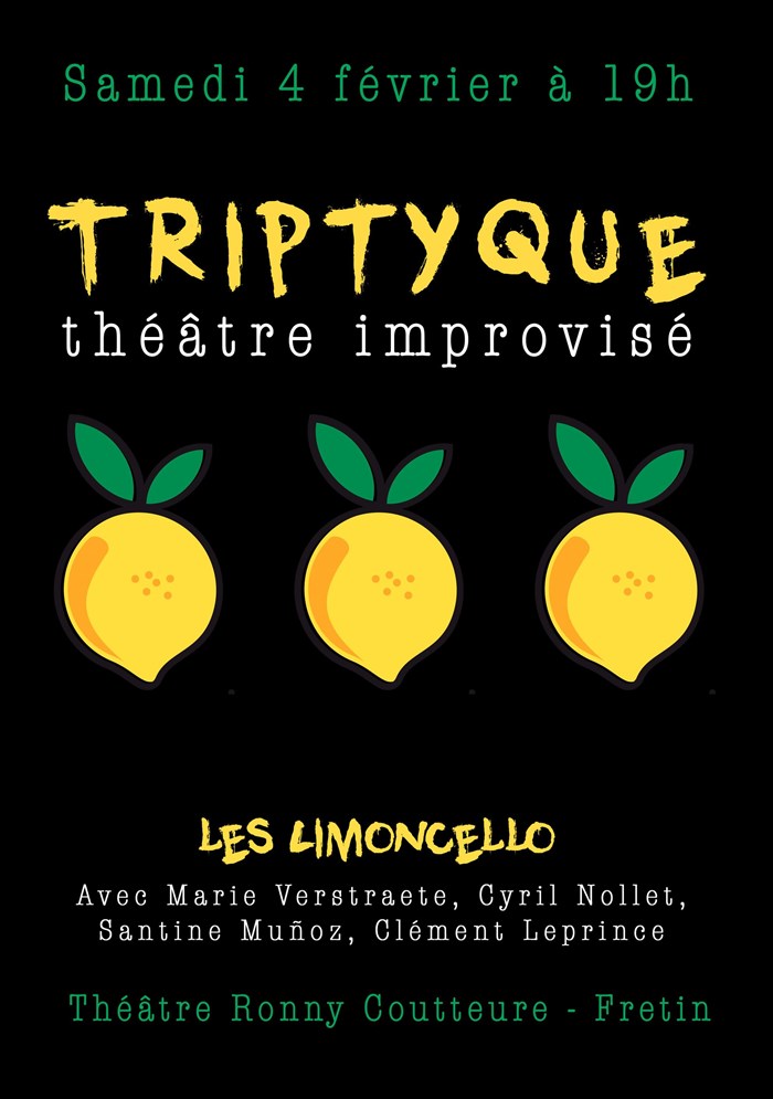 Triptyque est un spectacle de théâtre improvisé où vous allez vivre des histoires créées dans l'instant, au gré de l'imagination de nos comédiens qui auront à coeur de vous embarquer dans des aventures aussi folles que poétiques.