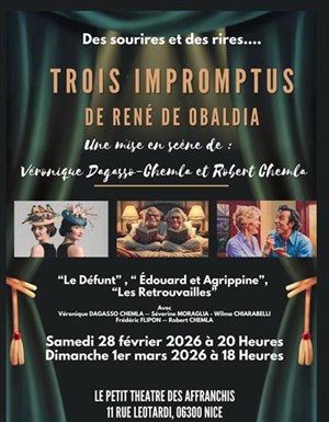 Découvre Trois impromptus, qui fait partie de notre sélection d’événements de type Théâtre de l'absurde et qui se tient ici : Petit Théâtre des Affranchis -