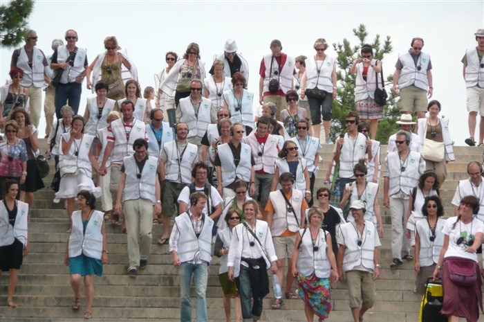 Visite guidée au casque pour 120 spectateurs et 2 acteurs.