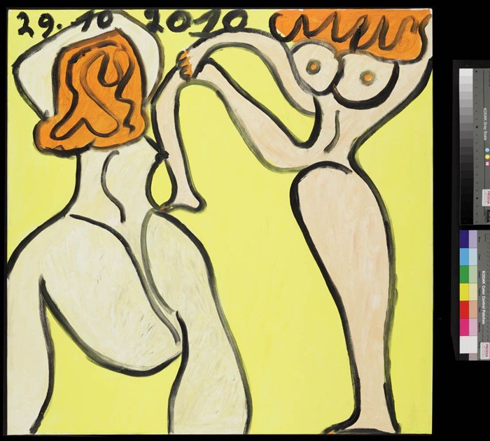 Oeuvres nées dans l'atelier de peinture de La Pommeraie, un centre pour personnes handicapées en Belgique.