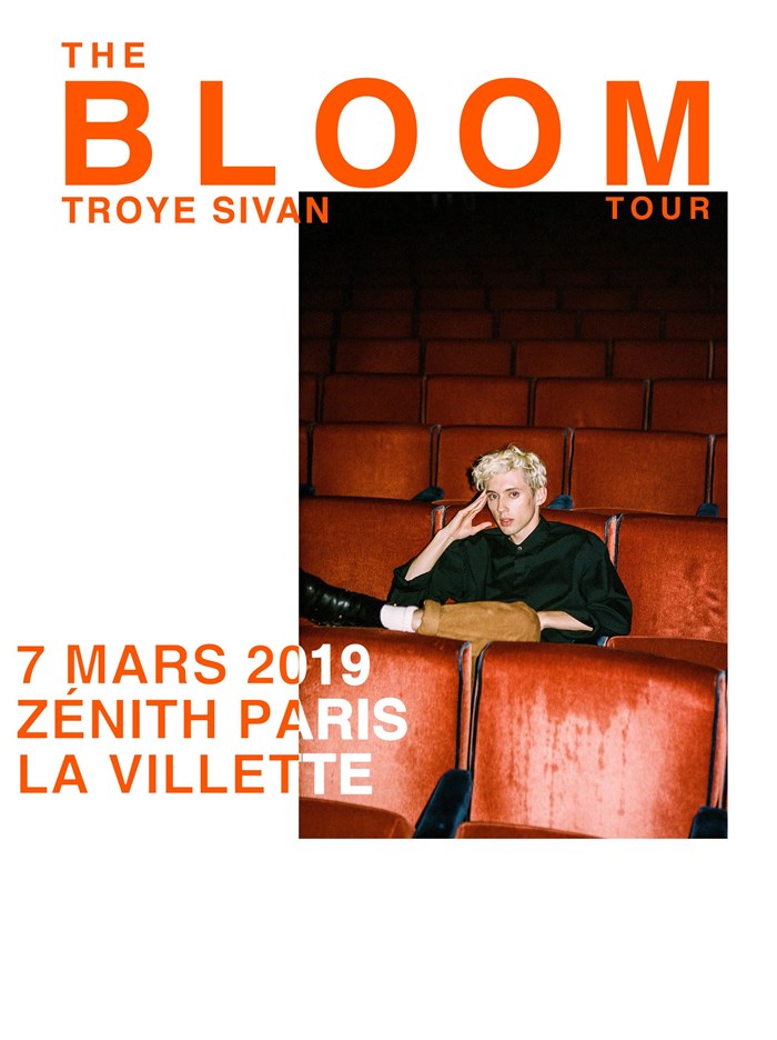 The Bloom Tour débutera le 23 février 2019 à Glasgow, et passera en France le 7 mars au Zénith Paris – La Villette Accès à la pré-vente fan club ici : http://app.troyesivan.com/. Mise en vente publique des billets vendredi 23 novembre à 10h sur livenation.fr Avec son tube international 'My My My !', deuxième titre de Troye Sivan à se placer en tête du Billboard (catégorie Dance Club), le grand gagnant des MTV Europe Music Award et des Teen Choice Award est prêt à embarquer pour sa plus grande tournée !